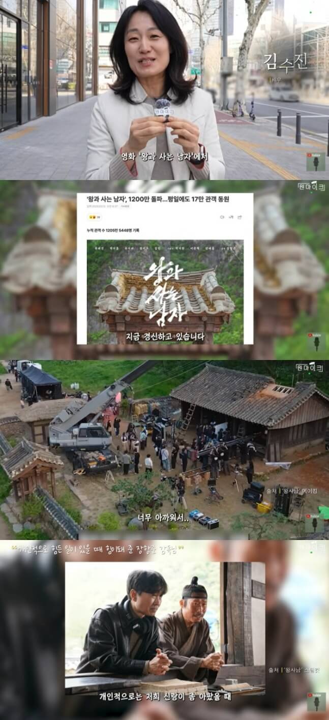 이날 거리에서 등장한 배우 김수진은 "'왕과 사는 남자'에서 막동어멈 역할을 맡았던 배우 김수진이다"고 소개했다.이어 "(영상 촬영 기준) 어 밤에 1200만이 넘어서 놀라운 스코어를 경신하고 있다"며 "다들 너무 재밌게 봤다고 하고, 여운이 길게 남는다고 축하해 주셨다"고 기쁜 마음을 전했다.