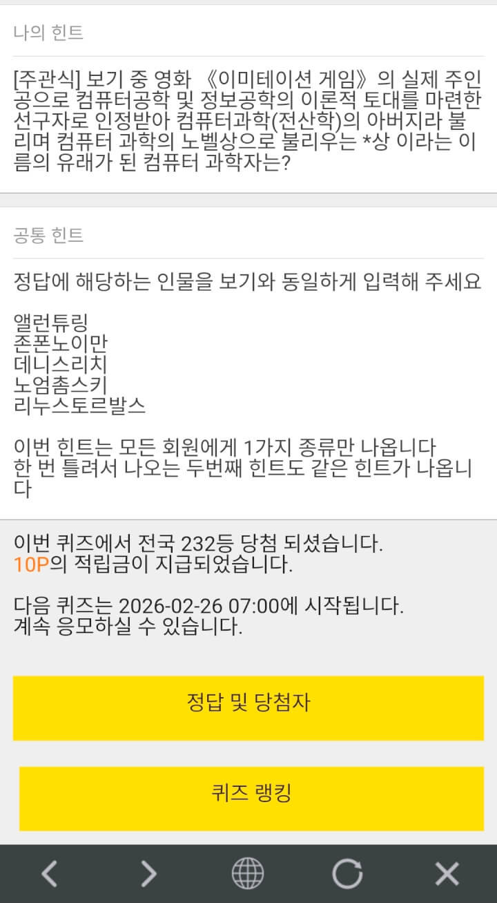 10시퀴즈 10원 받았습니다
