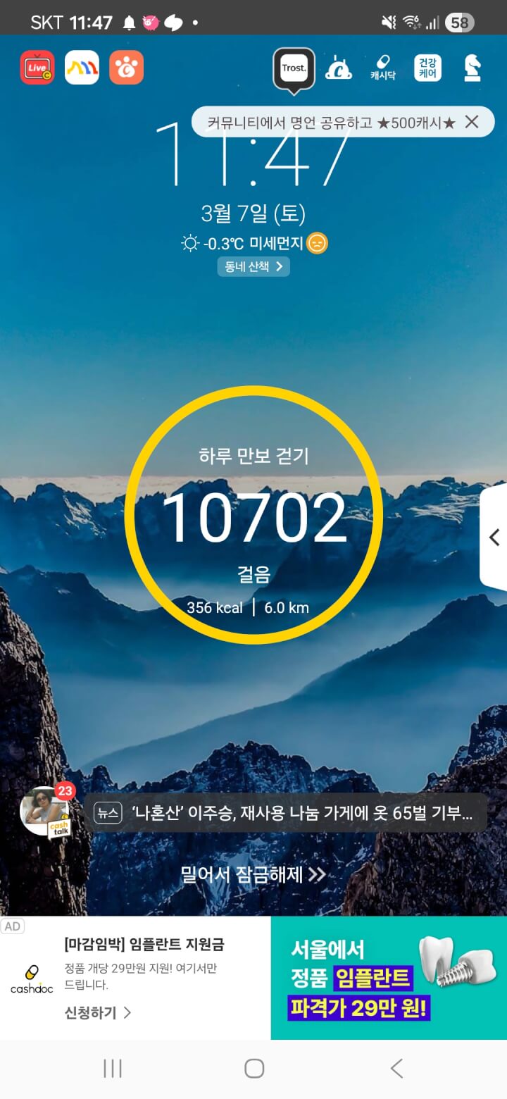 만보걷기와 숫자놀이 올립니다 푸시님들 편안한밤 되세요