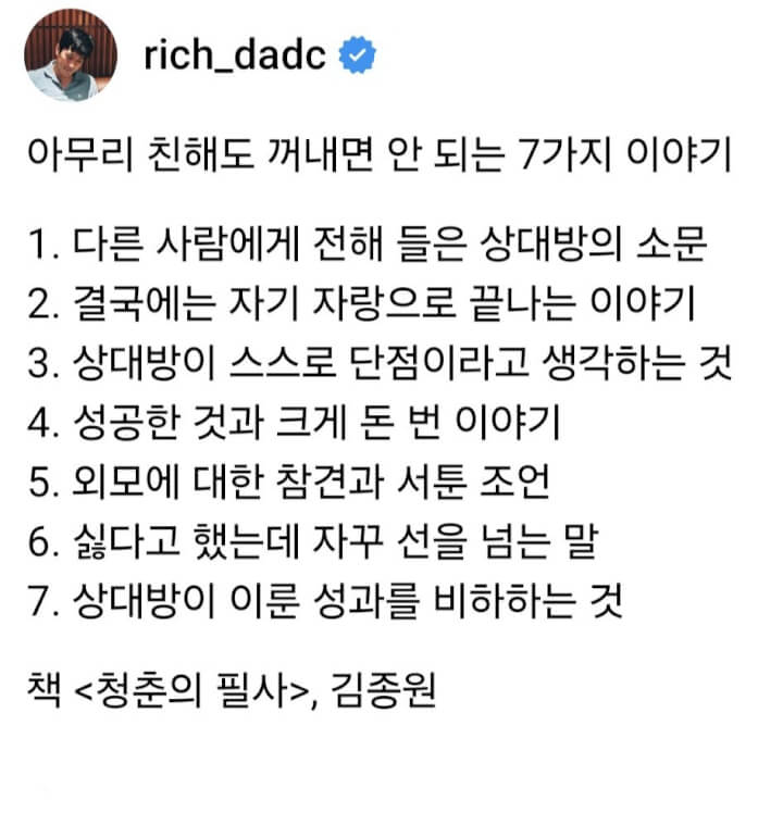 - 아무리 친해도 꺼내면 안되는 7가지 이야기