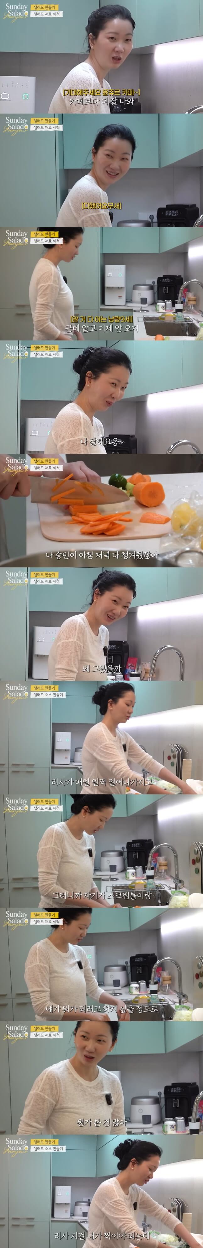 무엇보다 눈길을 끈 건 9살 딸 리사의 아침 루틴이었다. 장윤주는 "리사가 매일 우리보다 먼저 일어나서 스크램블 같은 아침을 챙겨준다. 그런지 꽤 됐다"며 "뭐가 되려고 하지 싶을 정도 뭔가 본건 많다"라고 흐뭇해했다. 다만 "그 모습을 찍어야 하는데 매일 못 일어나서 마음속으로만 보고 있다"고 덧붙이며 웃음을 더했다.