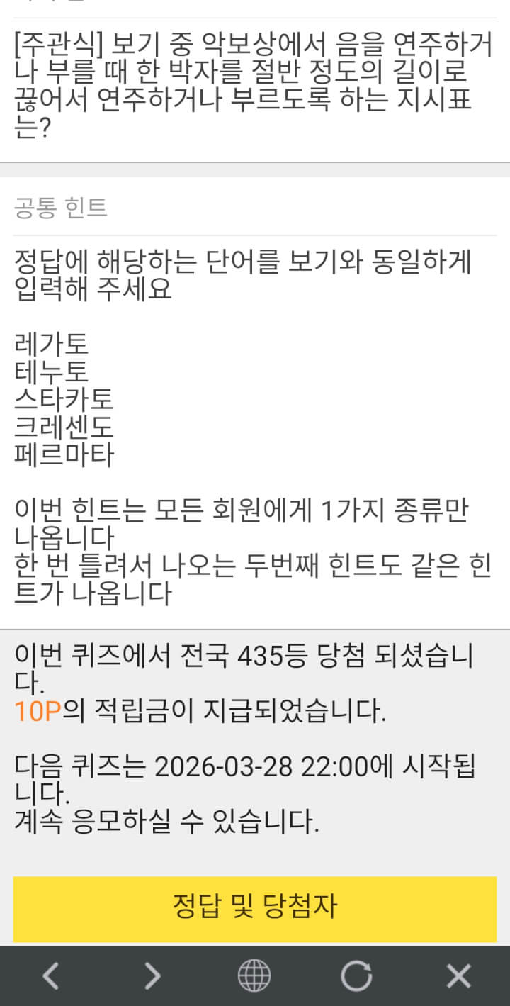 5시 퀴즈10점 받았어요 ~~