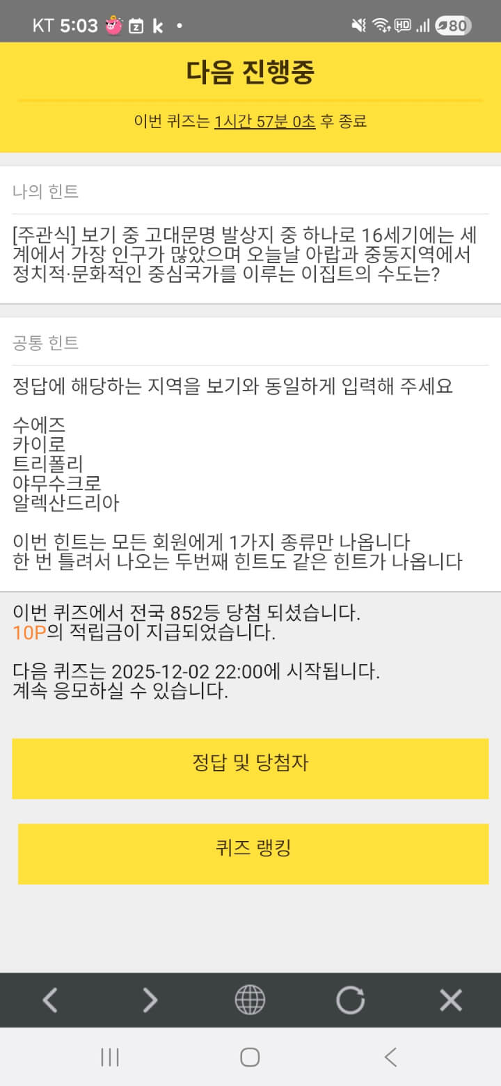 퀴즈 10원 받았어요