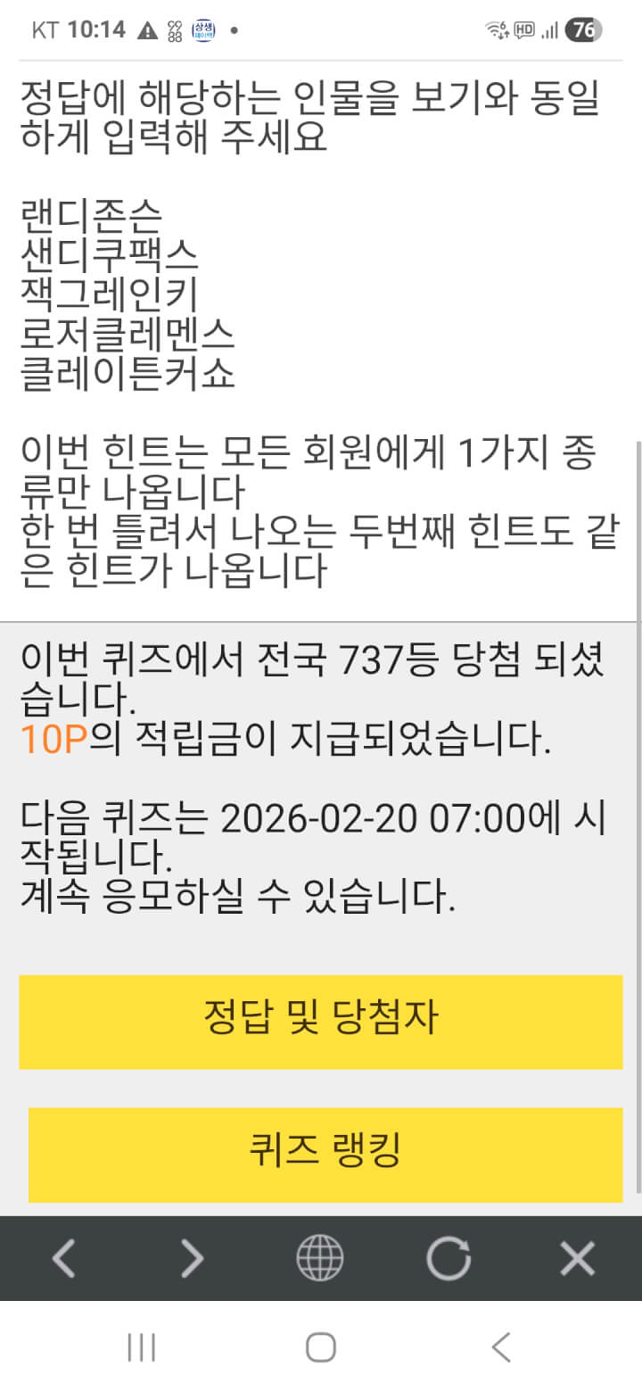 10시퀴즈 10원 받아 올려봅니다 울푸시님들 댓글 함께해 주시고 제글 읽어주시고 찾아주셔서 고맙습니다