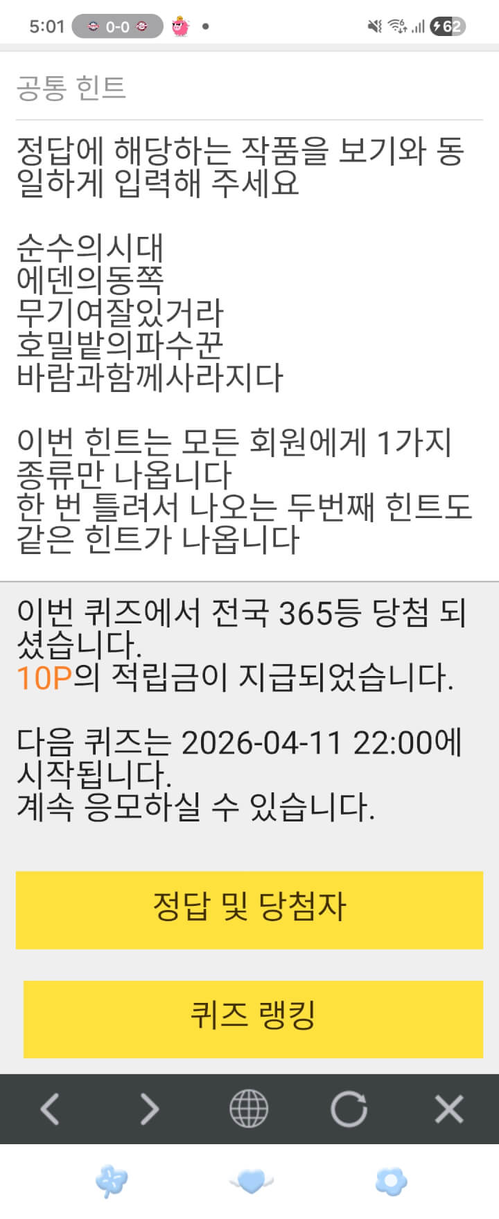 어제5시퀴즈 10원과 오늘출첵 3원담아 점심전 푸시글 올립니다 🪴