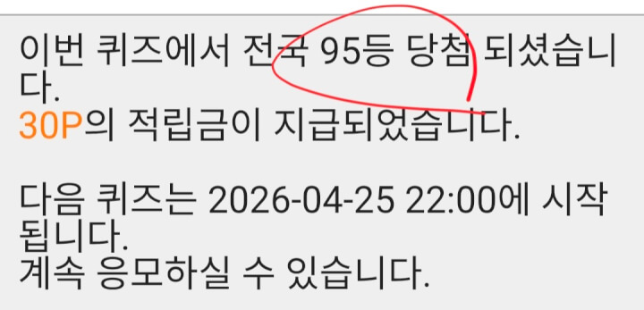 5시 퀴즈 30p와 떨어진 숫자 모음 같이 올립니다. 고맙습니다. 좋은 저녁 시간 되셔요.