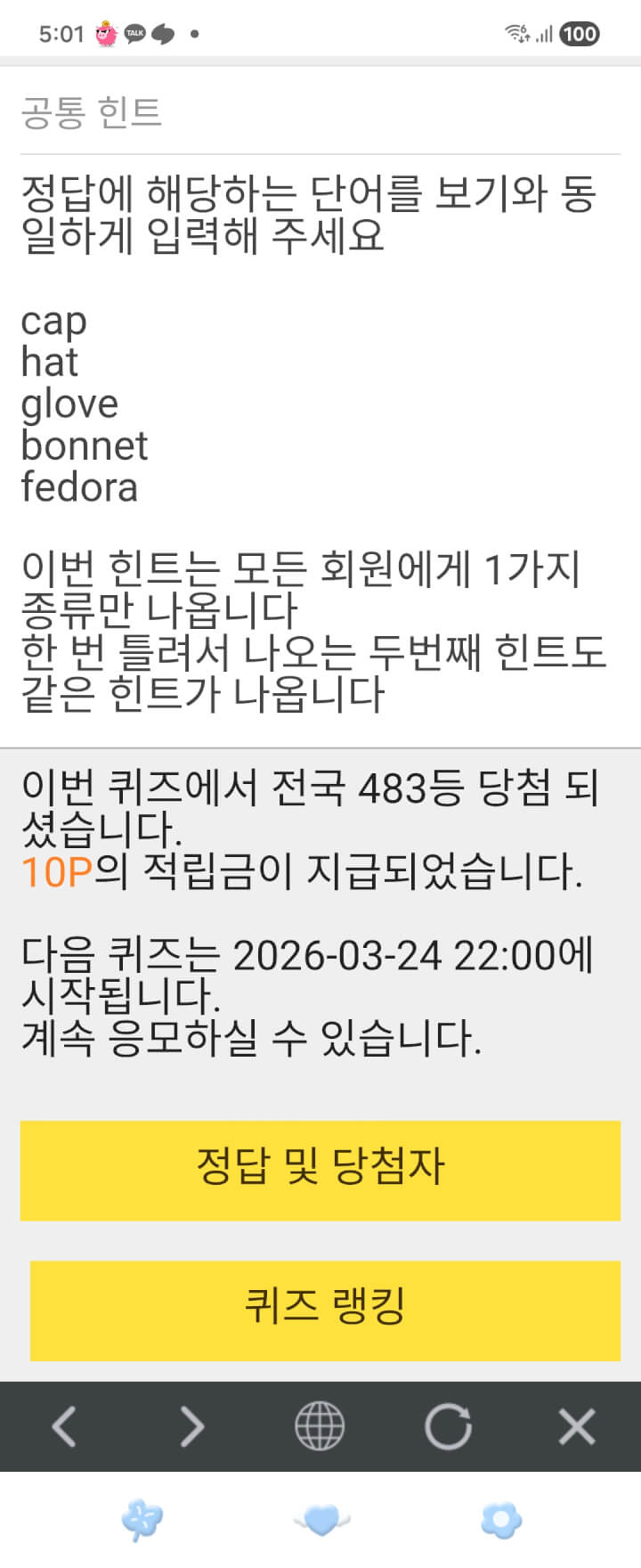 5시퀴즈 10원과 딱떨어진 숫자놀이 담아 늦은밤 푸시글 올립니다 ☘️
