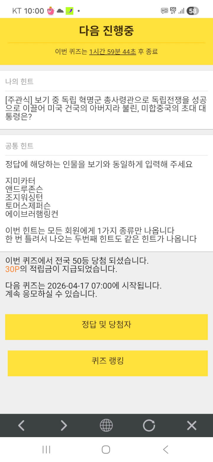퀴즈 30원 받았어요