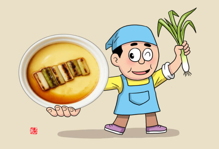대파를 뭉근하게 끓이고 천천히 볶아내 깊은 채소 향을 내고 달걀을 부드럽게 쪄낸 일본식 계란찜입니다. 흔히 먹는 한국식 계란찜보다 부드럽고 촉촉해 푸딩 같은 식감이 특징입니다.