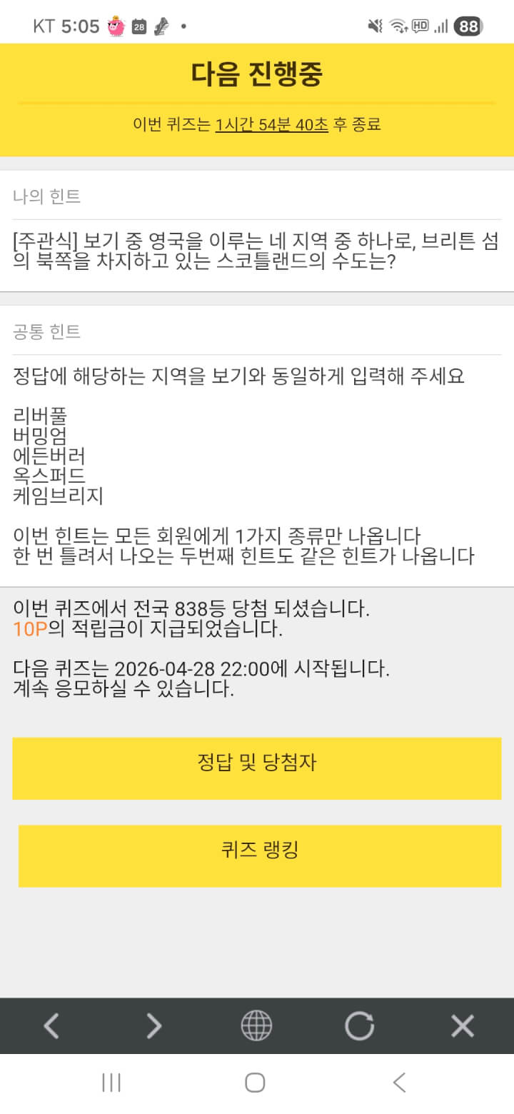 퀴즈 10원 받았어요