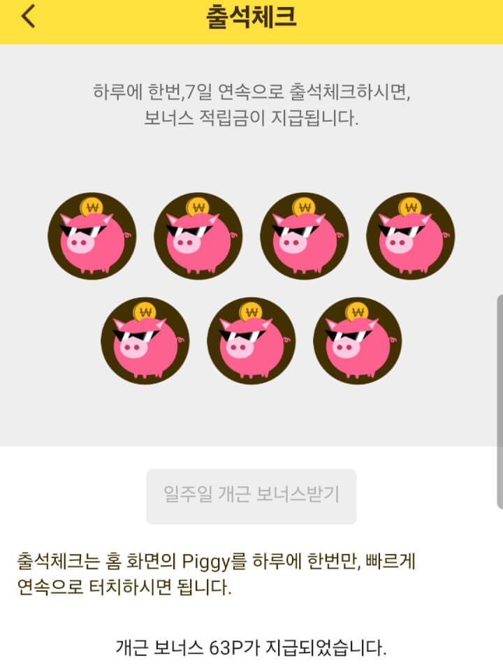 출첵 보너스 받았어요