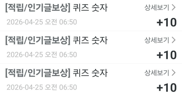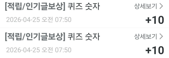 오늘 주신 인기글 보상 적립 입니다. 고맙습니다.오늘은 바람 그닥 불지 않은지 베란다쪽이 조용 하네예~~~^^