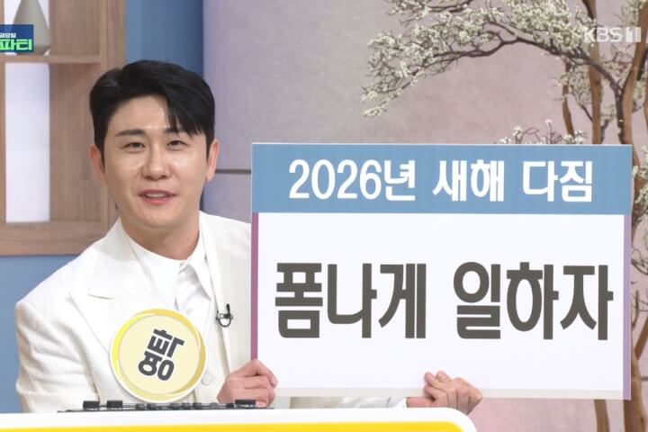 그는 “새해 인사를 ‘아침마당’을 통해 드릴 수 있어 감사하다“라며 “21년째 노래하고 있고, 가끔 연기도 하고 프로듀싱, 작곡, 작사도 하고 있다”고 자신을 소개했다. 또한 2026년 새해 다짐으로 “폼나게 일하자“라는 한마디를 전하며 긍정 에너지를 전파했다. 이어 김연자와 함께한 ‘주시고 (Juciy Go) (Duet with 김연자)’ 무대로 ‘대결! 쌍쌍 노래방’ 코너를 장악한 영탁은 능숙한 댄스를 곁들인 여유 넘치는 무대 매너를 보여줬다. 완성도 높은 듀엣 무대는 최종 우승으로 이어졌다. 이후 두 사람은 우승의 기쁨을 소외된 이웃과 나누고자 뜻을 모았는데, 기부된 200만 원은 독거노인종합지원센터를 통해 홀로 사는 노인들을 위해 쓰일 예정이다. 신혜영 서울 사랑의열매 사무처장은 “새해 시작을 의미 있는 기부로 함께해 주신 두 가수에게 감사하다. 어르신들에게 큰 위로가 될 것”이라고 전했다.