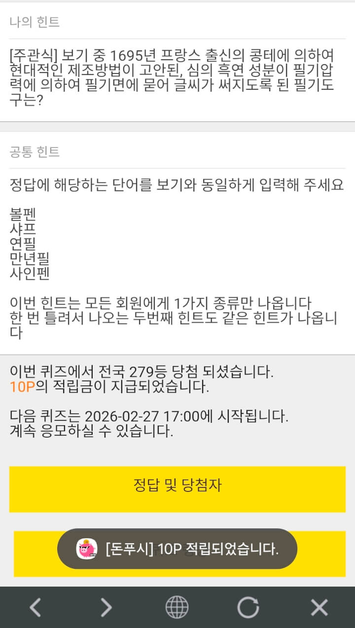 12시퀴즈 10원 받았습니다