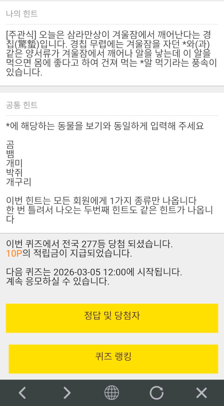 7시퀴즈 10원 받았습니다
