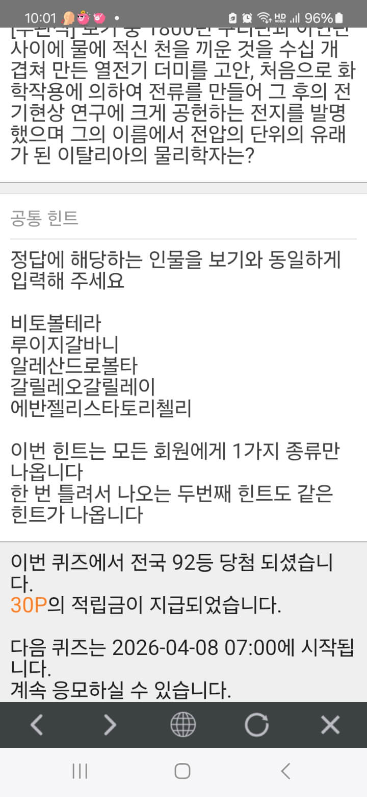 오랫만에 열시퀴즈 30원 받았네요 기분좋은 하루를 마무리 합니다
