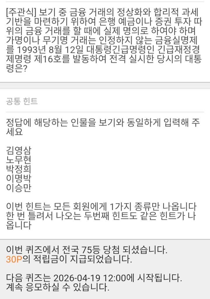 - 7시퀴즈 30원