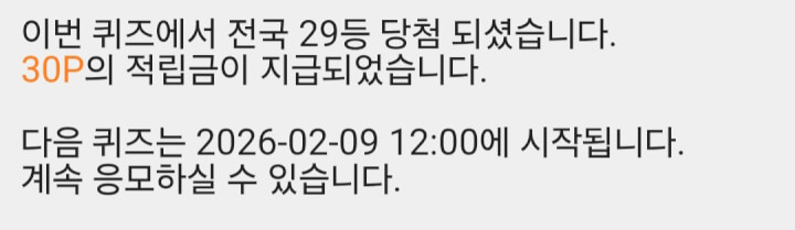 7시, 5시 퀴즈에서 30p 받았습니다 😊 댓글로 함께해 주셔서 감사합니다 ❤️🩷🧡🍀
