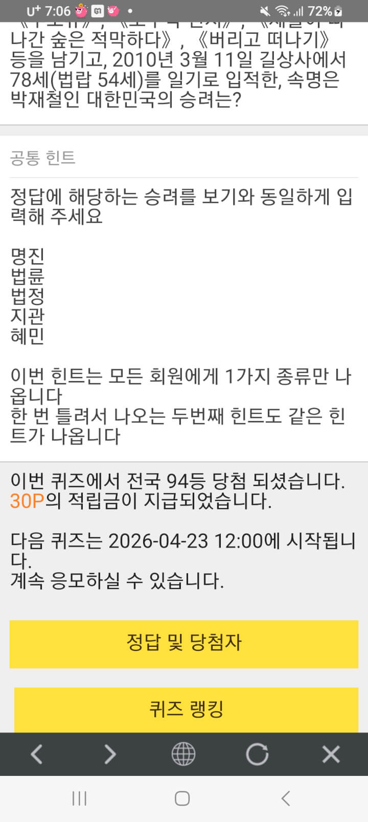 퀴즈 30원 받았어요 감사합니다 즐거운 오후 되세요