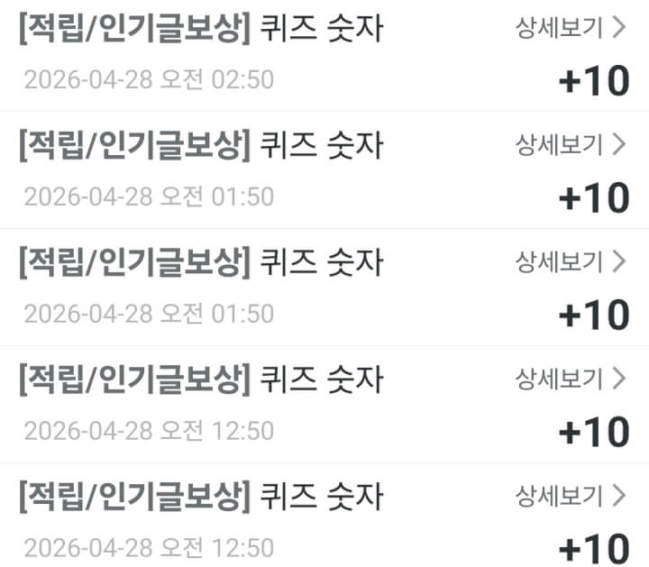 오늘 주신 인기글 보상 적립 입니다. 고맙습니다. 즐 오후 시간 되셔요.