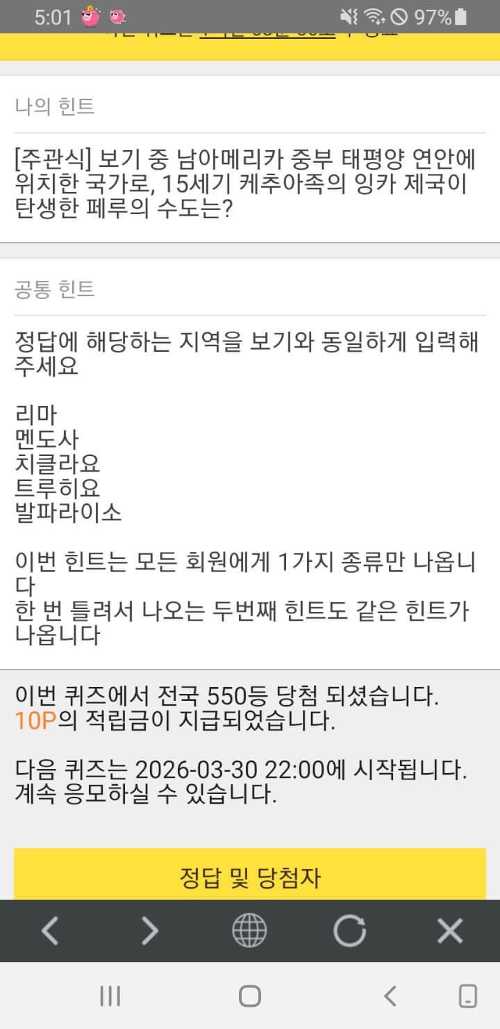 5시 퀴즈10점 받았어요.