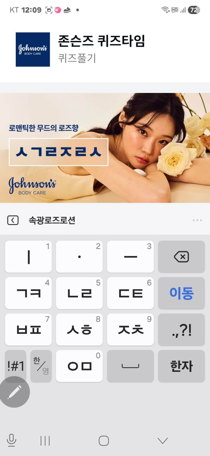 적립피드에 존슨즈초성퀴즈6p. 올라왔네요 💜속광로즈로션💜 정답입니다
