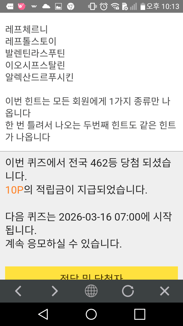 10시 퀴즈10점 받았어요.