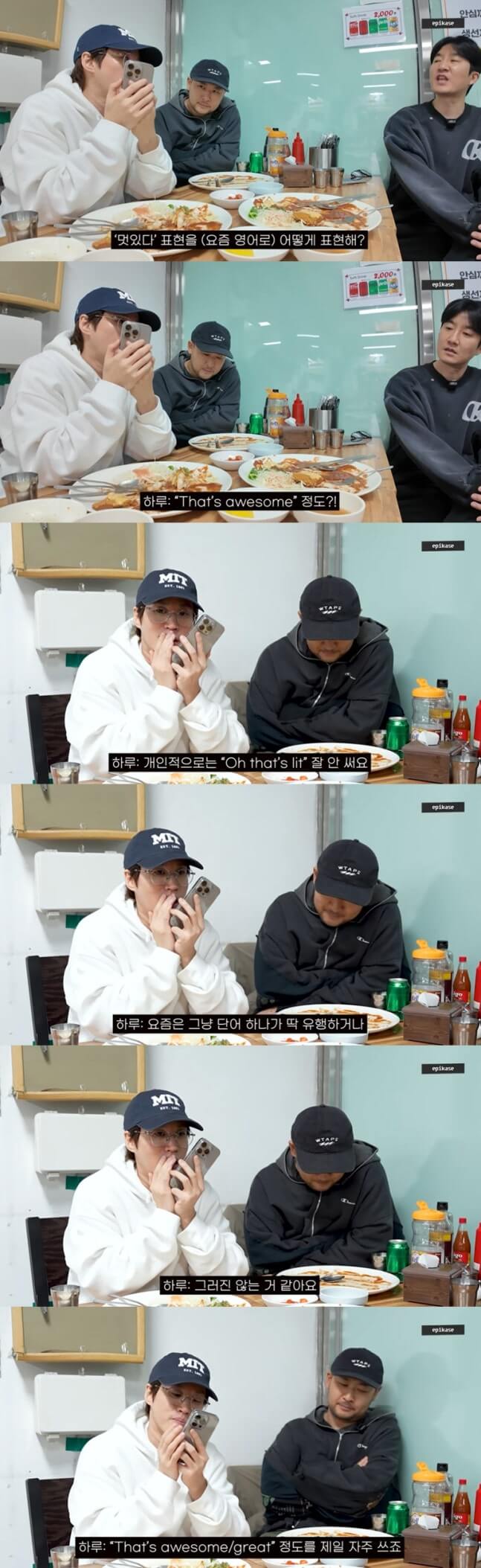 타블로는 "영어로 'Swag' 이제 아예 안 쓴다. 우리가 '따봉'하는 거랑 똑같다"며 지나간 유행어를 언급했다. 이에 투컷이 "요즘에 'Lit'(쩐다) 하지 않냐"고 묻자, 타블로는 "Lit도 이제 (안 쓴다). 아저씨"라며 질색해 웃음을 자아냈다.