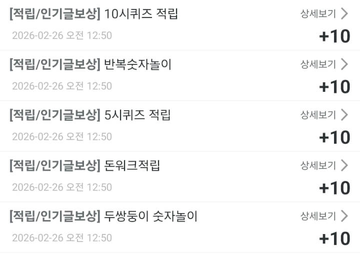 - 인기글보상 적립