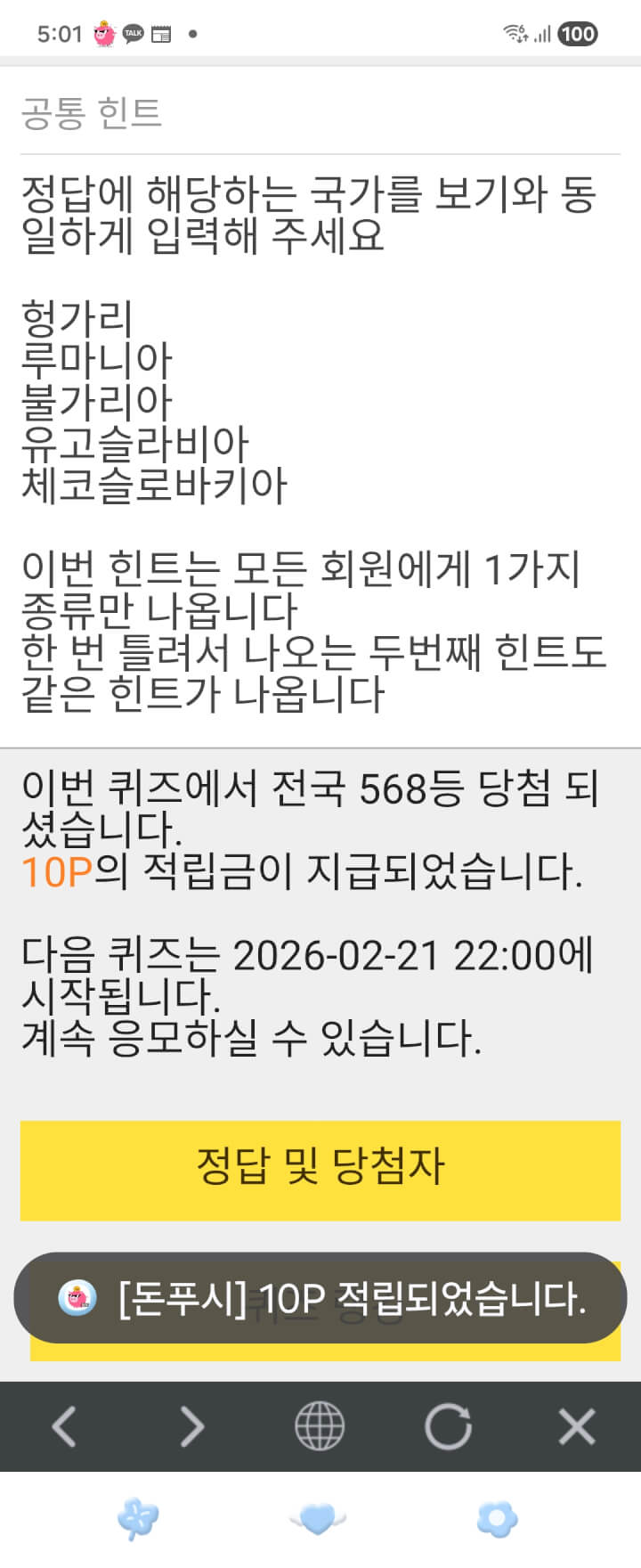 10시퀴즈 10원담아 이른아침 푸시글 동참합니다 ☘️
