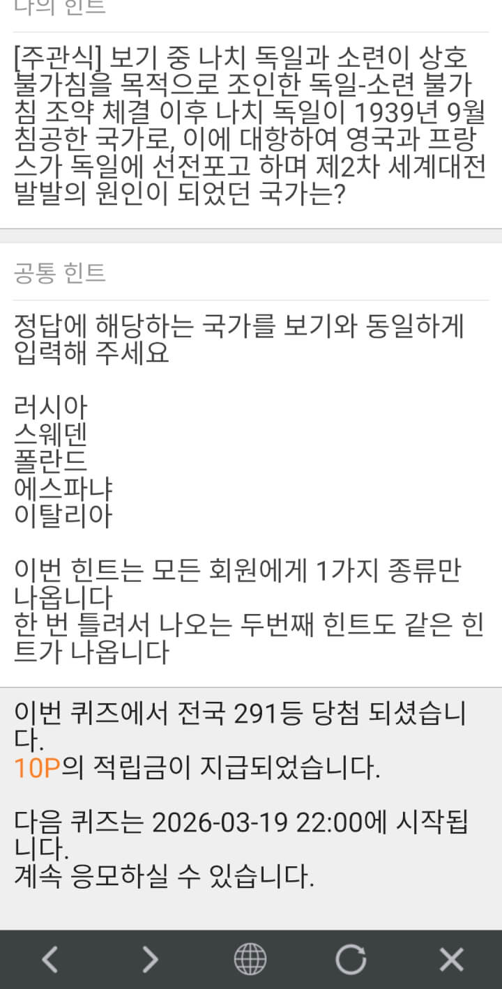 5시 퀴즈10점 받았어요~~