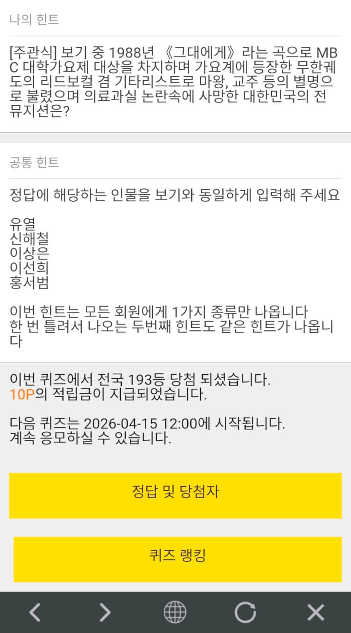 7시퀴즈 10원 받았습니다