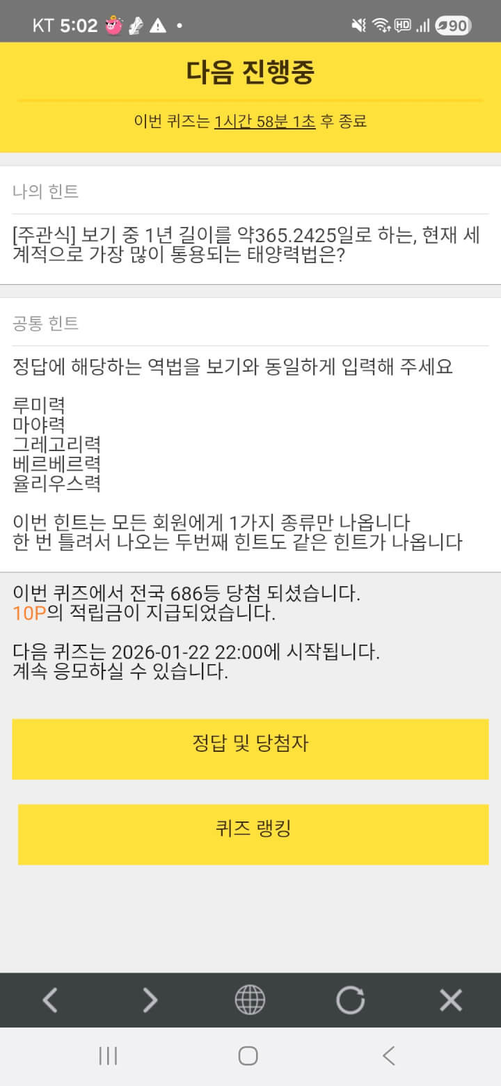 퀴즈 10원 받았어요