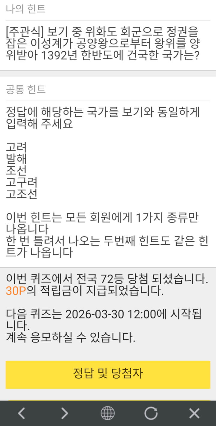 7시 퀴즈30점 받았어요. 12시 퀴즈 화이팅 하세요 ~~