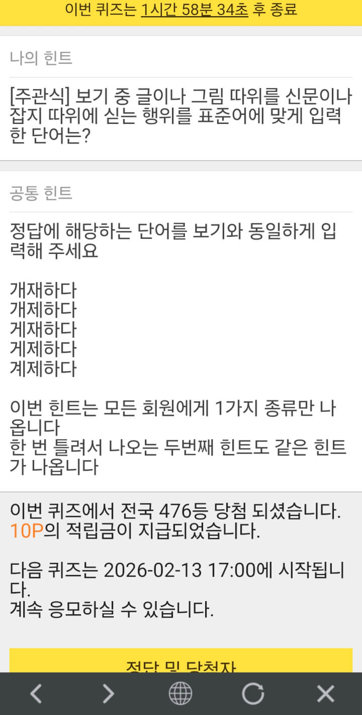 12시 퀴즈10점 받았어요. 5시 퀴즈 화이팅 하세요 ~~