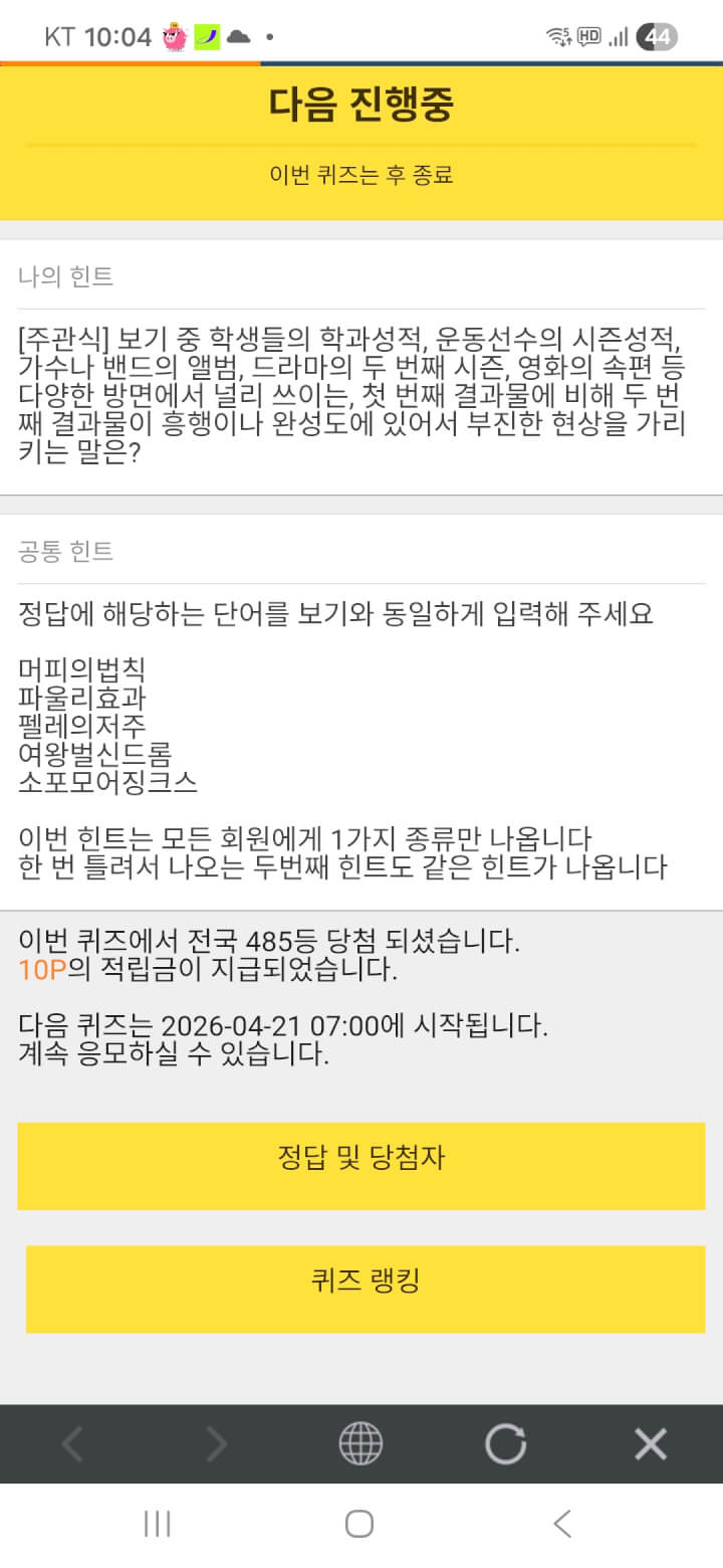 퀴즈 10원 받았어요