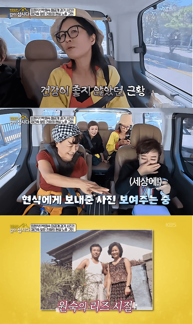 지난 10일 방송된 KBS 2TV 예능 프로그램 ‘박원숙의 같이 삽시다’에서는 박원숙, 혜은이, 홍진희, 황석정이 함께 가을 나들이를 즐기며 진솔한 대화를 나누는 모습이 공개됐다. 이날 방송에서 박원숙은 자신의 젊은 시절 사진을 정리하다 우연히 발견한 한 장의 사진을 계기로, 오래된 인연 임현식을 떠올렸다.