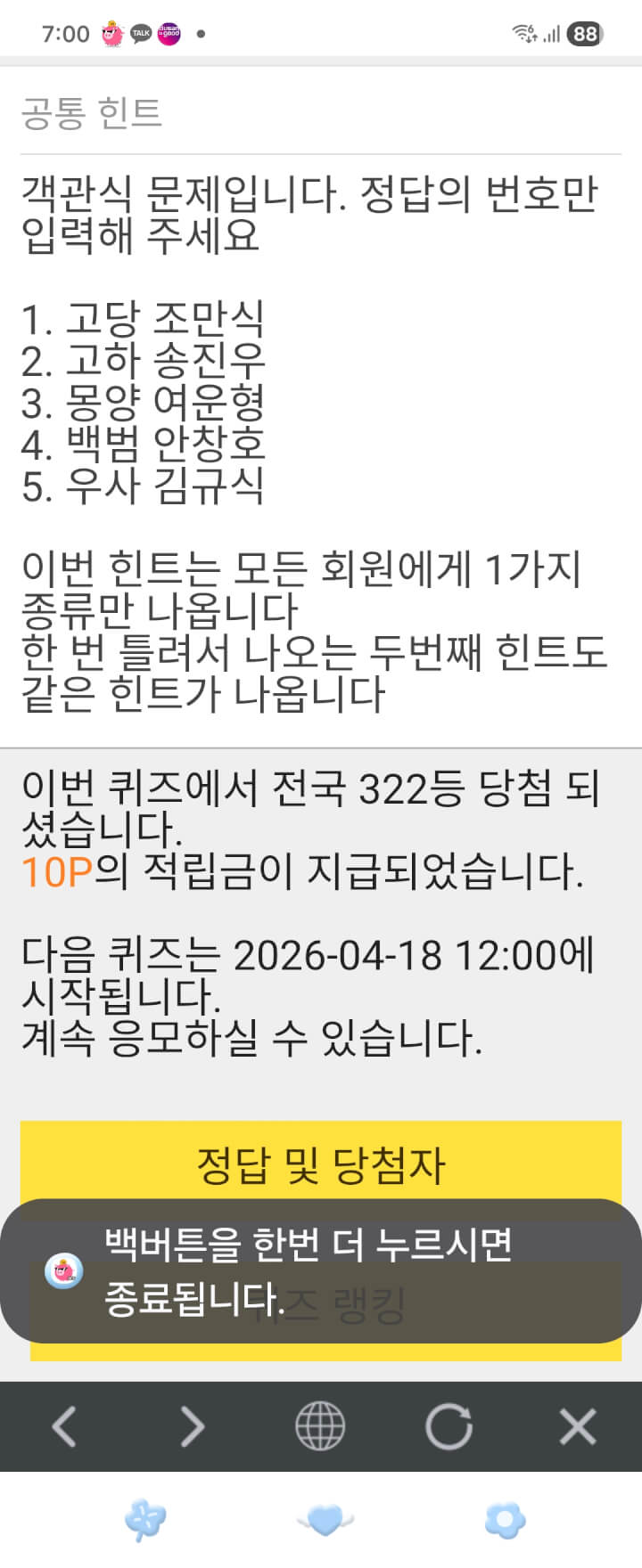 아침퀴즈 10원과 예쁜 숫자놀이 담아 주말푸시 동참합니다 ☘️☘️
