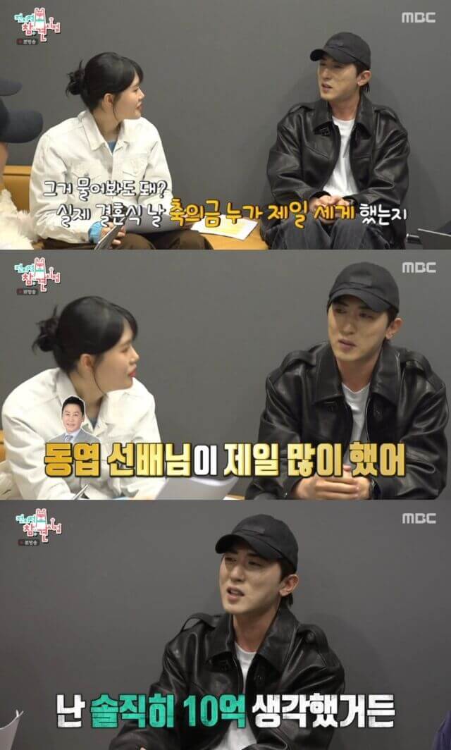 특히 화제를 모은 것은 실제 축의금 관련 비화였다. 엄지윤이 실제 결혼식에서 누가 가장 큰 금액을 냈느냐고 질문하자, 김원훈은 "(신)동엽 선배님이 제일 많이 했다"고 운을 뗐다. 이어 그는 "거의 1억 정도 했다. 순박하시더라. 나는 사실 10억 생각했다"는 황당한 장난을 덧붙여 엄지윤으로부터 "진짜 분량 괴물"이라는 찬사를 이끌어냈다.