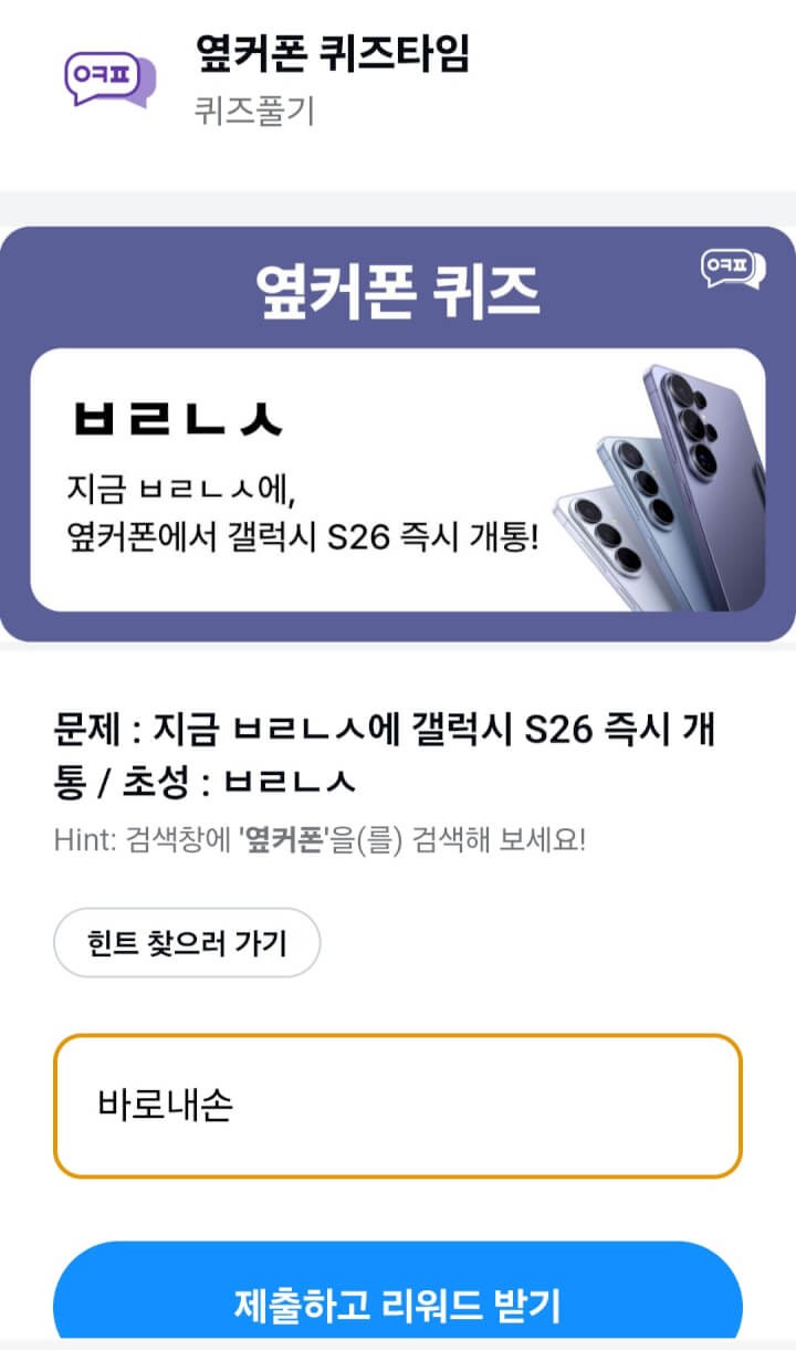 적립피드 초성퀴즈 바로내손