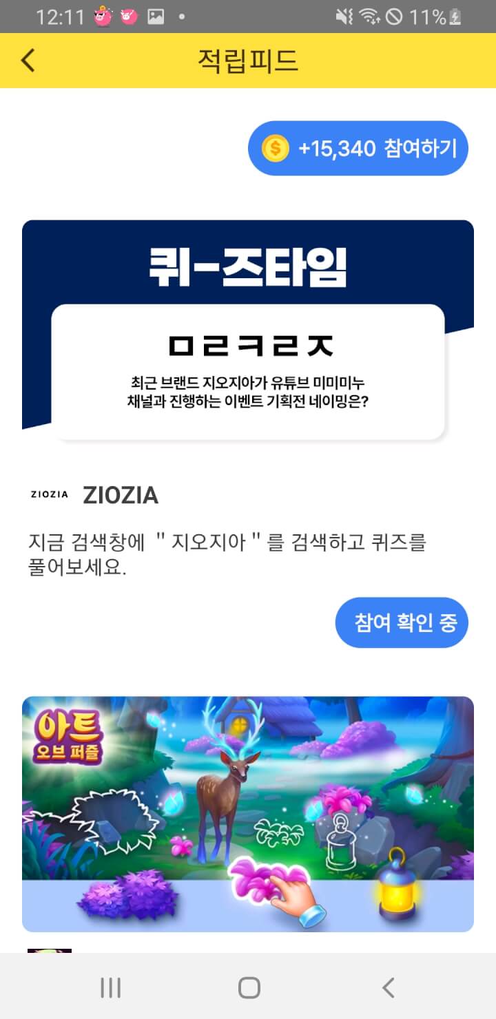 적립피드에 지오지아 8점 초성퀴즈 적립 있어요. 답:미라콜로지.