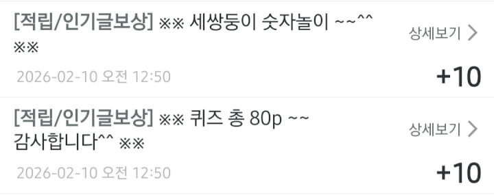 인기글 보상 5개 받았습니다 😊 함께해 주셔서 감사합니다 ❤️🩷🧡🍀
