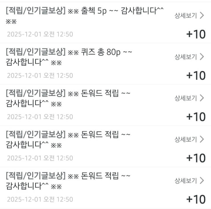 인기글 보상 5개 받았습니다 😊 댓글과 꾹으로 함께해 주셔서 감사합니다 ❤️🩷🧡🍀☘️
