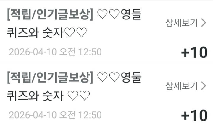 님들덕분에 받은 인기글보상 5개 올립니다 감사합니다 ☘️☘️