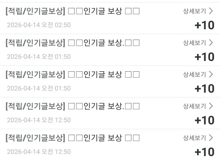 14일 인기글 보상 받았습니다 감사합니다 오늘 하루도 고생하셨어요~~