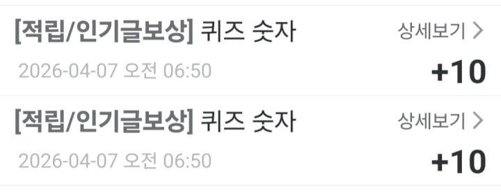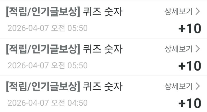 오늘자 출첵 입니다. 인기글 보상 적립과 단위 업 반복과 대칭 숫자 모음 같이 올립니다. 고맙습니다.